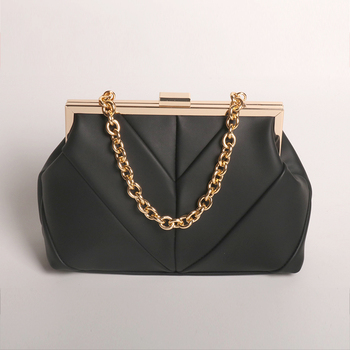 Magnifique pochette en cuir matelassé pour femme Sac à main de soirée élégant avec chaîne dorée épaisse